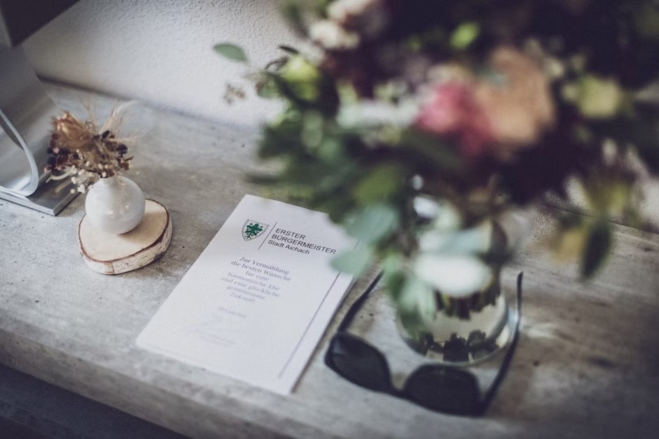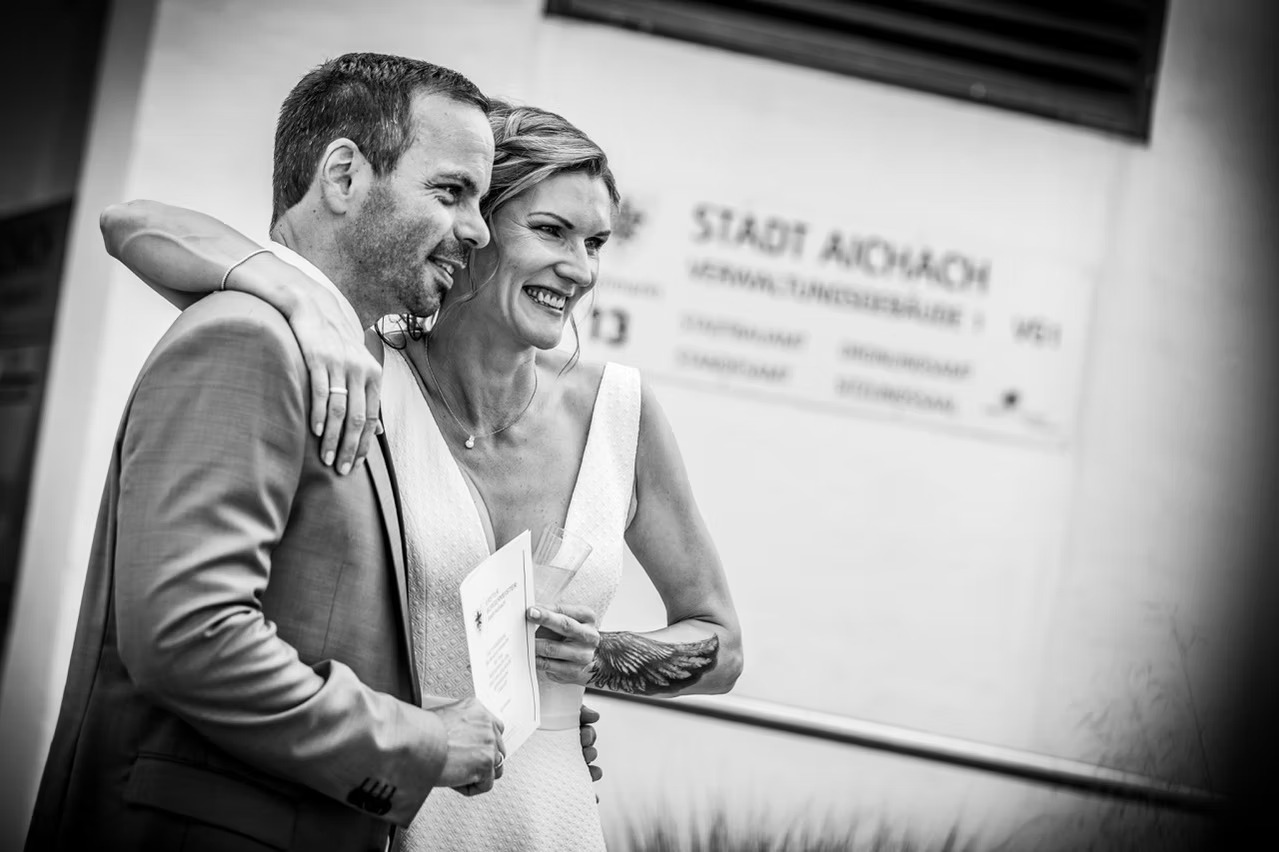 Der Tag begann mit einer herzlichen standesamtlichen Trauung im Standesamt Aichach. Ein ganz besonderer Moment: Anikas Vater begleitete sie nach vorne – fast wie bei einer klassischen kirchlichen Zeremonie. Ein emotionaler Augenblick, der für Gänsehaut sorgte.