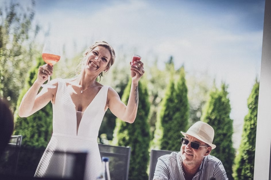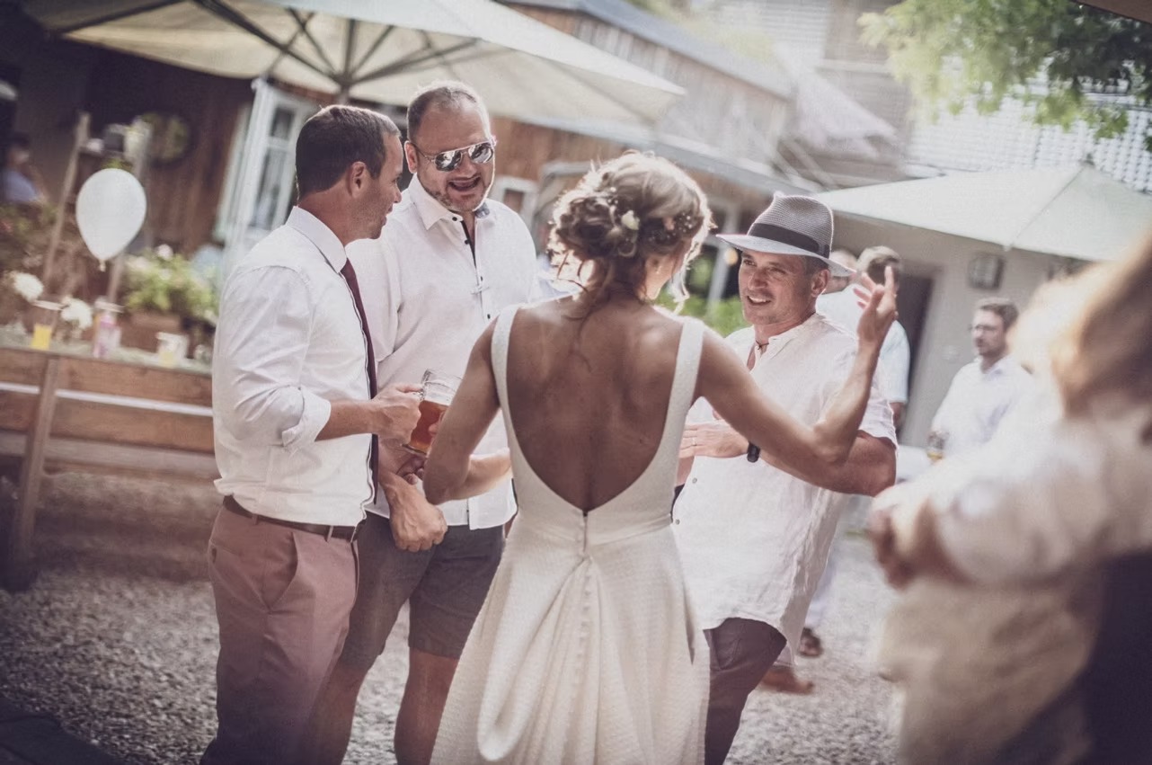 Während die Sonne langsam unterging, wurde weiter gefeiert, gelacht und angestoßen. Es war eine Hochzeit, die durch ihre Leichtigkeit und natürliche Schönheit begeisterte – nicht überladen, nicht inszeniert, sondern einfach echt. Und genau das macht sie so besonders.