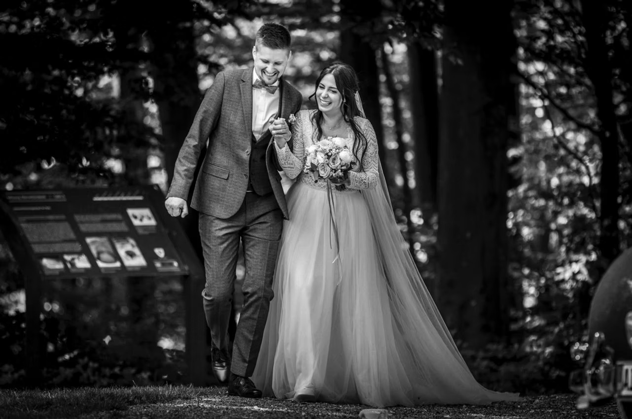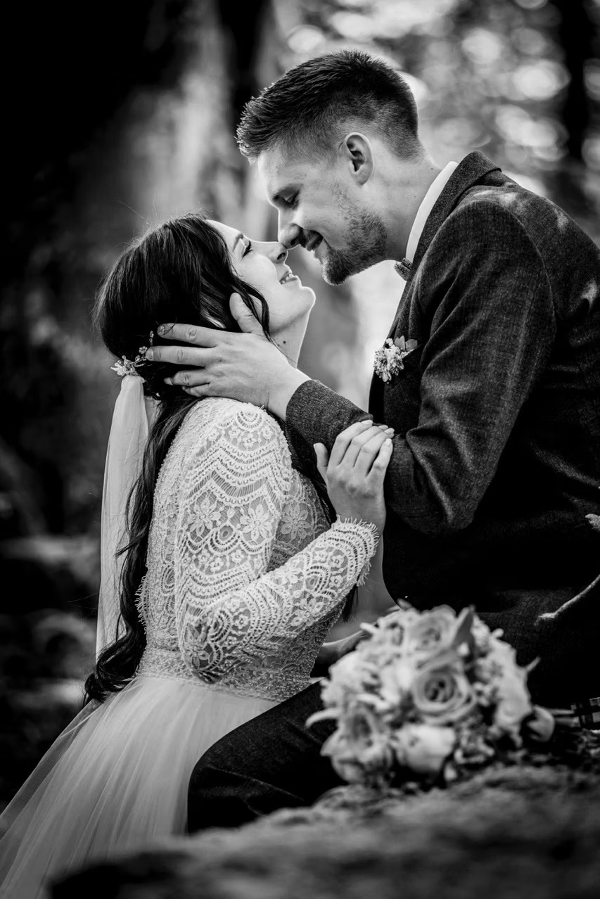 Nach der Zeremonie folgte einer meiner Lieblingsmomente des Tages: das Paarshooting in aller Ruhe. Während die Gäste bereits zur Feierlocation aufbrachen, hatten wir etwa eine halbe Stunde ganz für uns. Die Stimmung war entspannt, Lisa und Tom konnten einmal tief durchatmen und den Moment genießen. In der natürlichen Umgebung entstanden traumhafte, intime Bilder voller Liebe und Leichtigkeit – ohne Stress, ohne Zeitdruck, einfach pur und echt.
