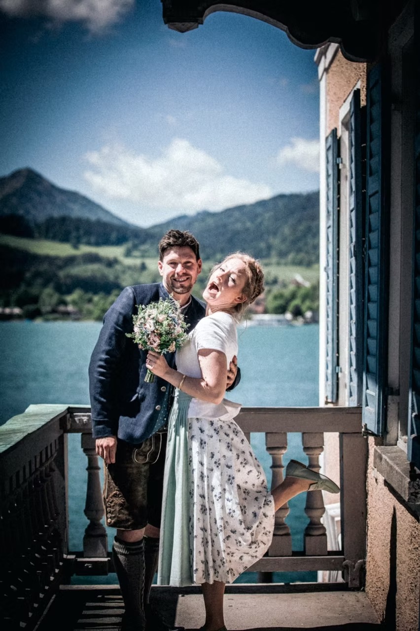 Rahel und Flo haben sich entschieden, ihre Hochzeit auf zwei Tage zu verteilen – und das hätte nicht schöner sein können. Der Freitag begann mit einer intimen standesamtlichen Trauung direkt am Tegernsee, umgeben von Wasser, Bergen und einer traumhaften Kulisse. Doch anstatt gleich weiterzuziehen, wartete eine Überraschung: Eine exklusive Bootsfahrt über den Tegernsee! Die „Sonderfahrt“ bot eine einmalige Atmosphäre – entspannte Gäste, ein verliebtes Brautpaar und das sanfte Schaukeln des Wassers machten diesen Moment unvergesslich.