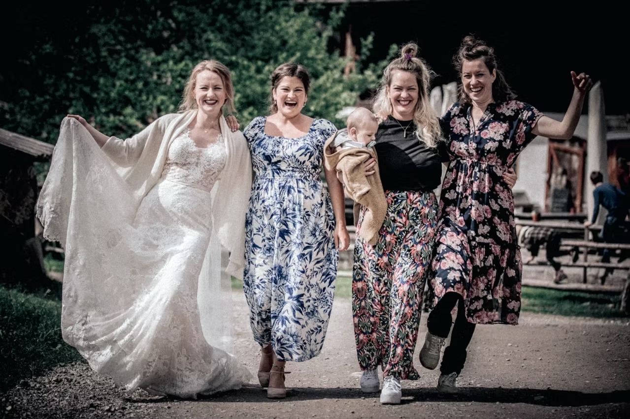 Ein echtes Highlight war ein spontanes Shooting mit den Gänsen, das für viele Lacher und einzigartige Bilder sorgte. Die Mischung aus traditionellem, rustikalem Flair und der lockeren, energiegeladenen Stimmung machte diesen Tag zu etwas ganz Besonderem.