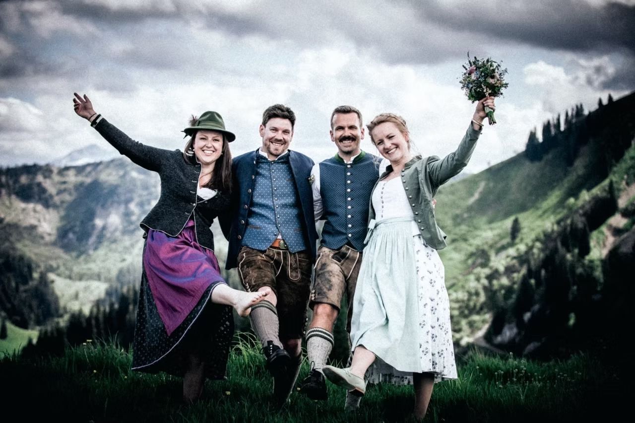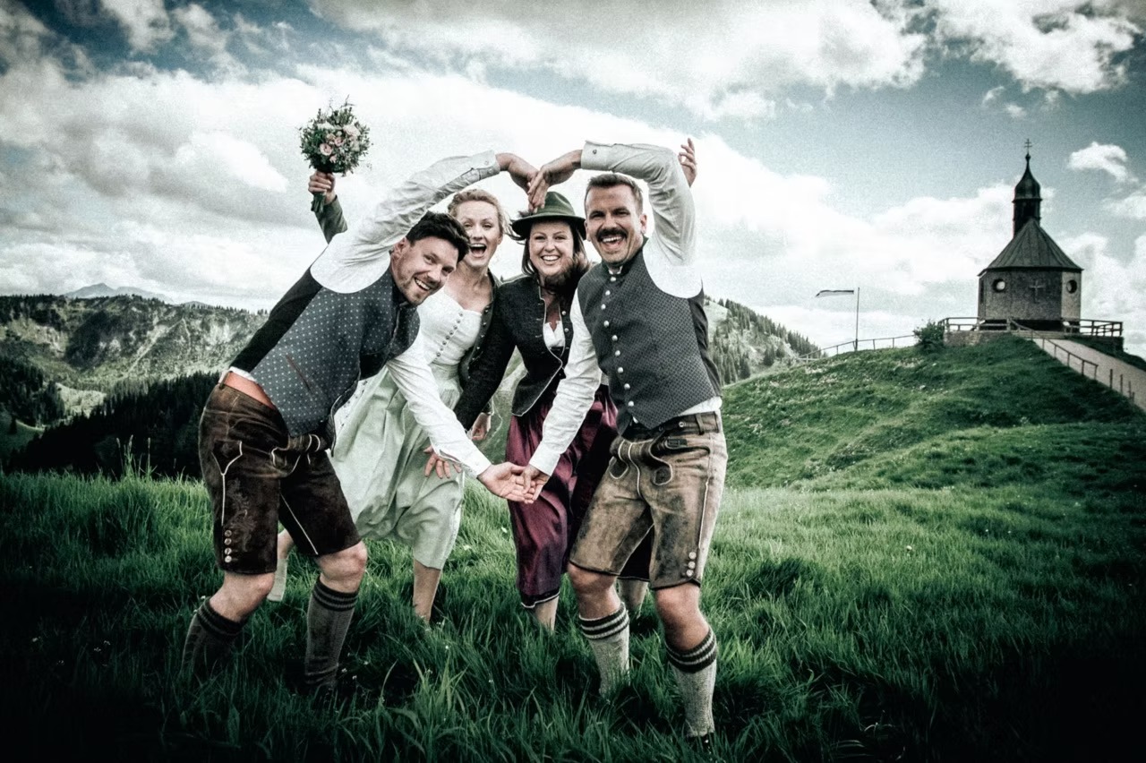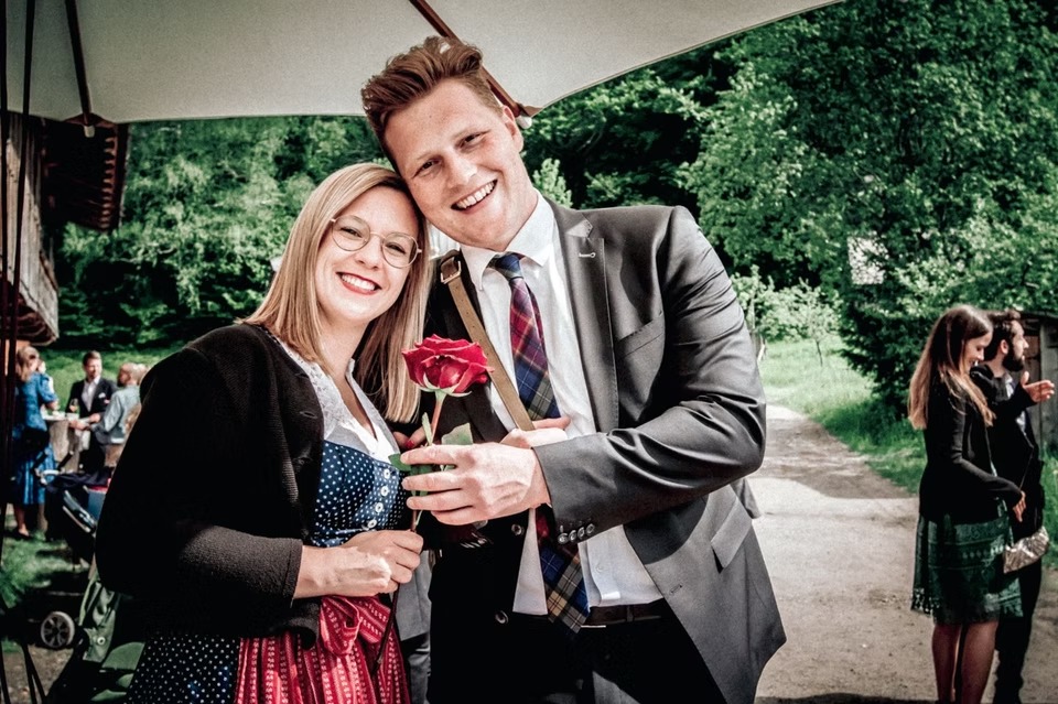 Nach den beeindruckenden Momenten am Berg ging es zur Feier in eine ebenso besondere Location: das Freilichtmuseum Markus Wasmeier. Hier wurde nicht nur ausgelassen gefeiert, sondern auch die Umgebung erkundet – viele Gäste nutzten die Gelegenheit, sich die Tiere des Museums anzusehen und in das historische Ambiente einzutauchen.
