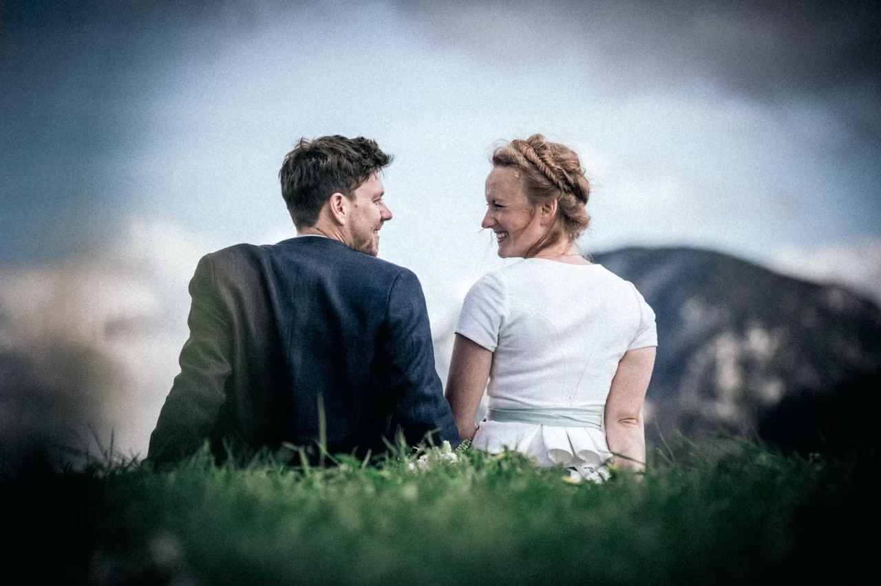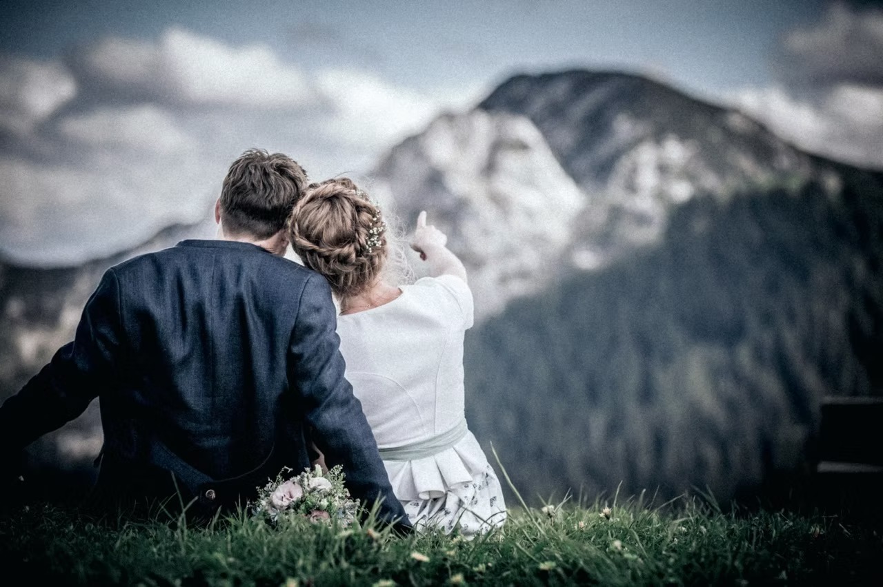 Nach der Trauung am Samstag machten wir uns mit der Seilbahn auf den Weg in die Berge, um das Paarshooting inmitten der beeindruckenden Kulisse der bayrischen Alpen zu machen. Die Aussicht, das Licht und die Ruhe dort oben schufen eine einmalige Atmosphäre für natürliche, emotionale Aufnahmen.
